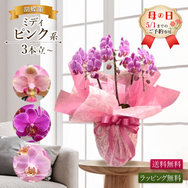 【2026年 母の日ギフト・5/1までのご予約専用/数量限定】胡蝶蘭 ミディピンク 3本立以上 ピンク かわいい 幸せが飛んで来る ラッピング無料 お祝い ギフト プレゼント 鉢植え [胡蝶蘭 ミディピンク 母の日]