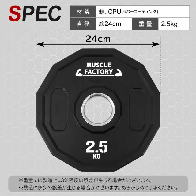| 商品名 | オリンピックバーベルプレート 2.5kg 2枚セット 50mm対応 ラバーコーティング 12角形 滑りにくい 高耐久 衝撃吸収 筋トレ 自宅 ジム |