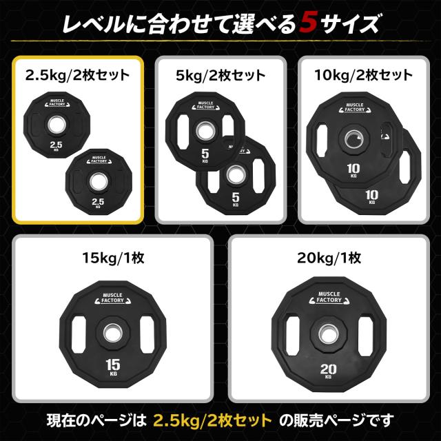 【細かな重量調整で停滞を突破】2.5kgから選べるラインナップで、バーベルトレーニングの重量の微調整が可能。無理なく段階的に負荷を上げられるため、筋力アップの停滞期を打破したい方にも最適です。