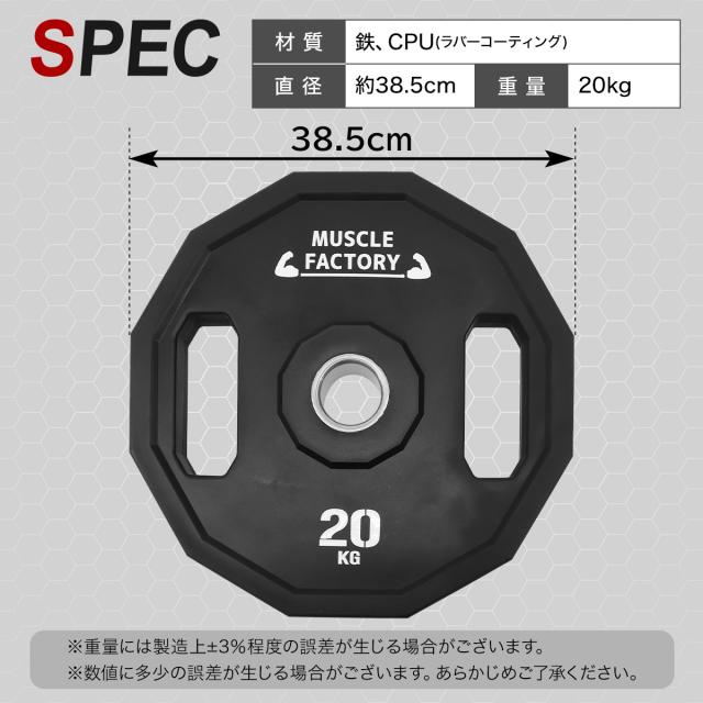 | 商品名 | オリンピックバーベルプレート 20kg 1枚 50mm対応 ラバーコーティング 12角形 持ち手付き 滑りにくい 高耐久 衝撃吸収 筋トレ 自宅 ジム |