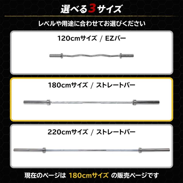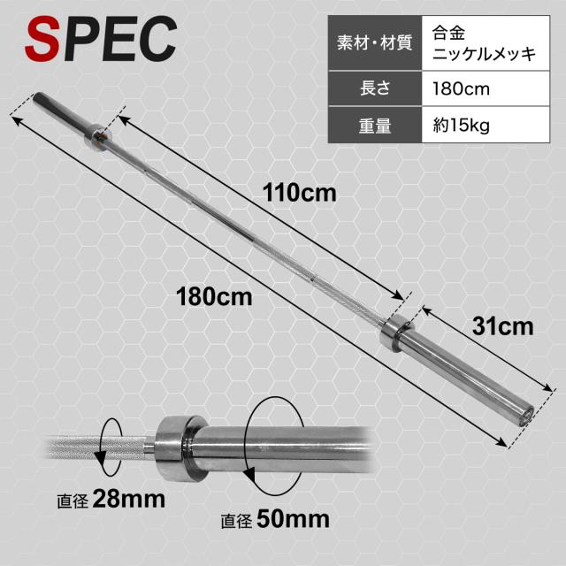 | 商品名 | オリンピックバーベル シャフト 180cm 直径50mm 耐荷重200kg 高剛性 BIG3 スクワット ベンチプレス デッドリフト トレーニング ジム 自宅 筋トレ 単品 |