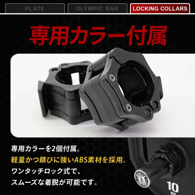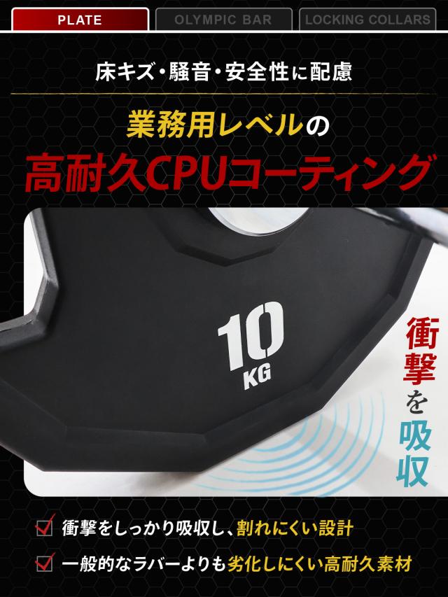 | セット内容 | オリンピックバーベルシャフト、2.5kgプレート×4、5kgプレート×4、10kgプレート×2、専用カラー×2 |