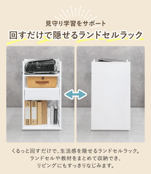 ランドセルラック ランドセル収納 ラック 子供用収納 キッズ収納 学用品収納 学習用品収納 教科書収納 絵本ラック 本棚 キッズラック 子供部屋収納 入学準備 入学祝い 新生活 小学生 幼稚園 保育園 通園 通学 見守り学習 リビング学習 リビング収納 片付け習慣 お片付けラック 自分で片付け 整理整頓 収納家具 多機能ラック 衣類収納 洋服収納 制服収納 引き出し収納 小物収納 バッグ収納 通園バッグ 習い事バッグ 回転ラック 回転式 隠し収納 隠せる収納 目隠し収納 キャスター付き 隠しキャスター 移動式ラック 可動式ラック スリムラック 省スペース コンパクト 省スペース収納 キッズ家具 家具 子供家具 インテリア リビング 子供部屋 一人暮らし ファミリー向け 収納棚 棚 ラック 整理棚 収納ボックス対応 引き出し付きラック お勉強 お受験 絵本 教科書 教材 勉強道具 学用品 学童用品 お道具箱 おどうぐばこ 小物 学校用品収納 教材収納 勉強道具収納 文房具収納 机周り収納 デスク周り収納 整理しやすい 使いやすい 便利グッズ 人気 おすすめ 売れ筋 新商品 回転式収納 見せない収納