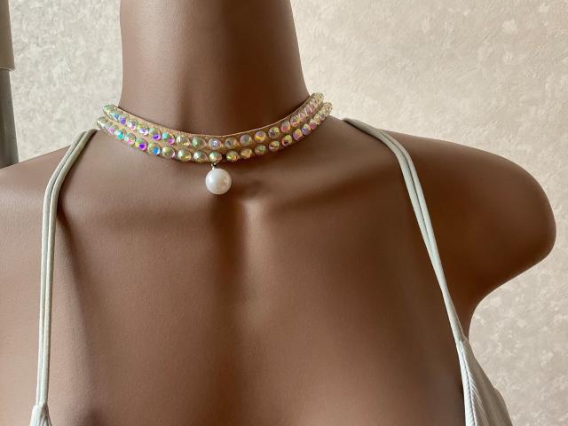 存在感のあるデザインが魅力のラインストーンチェーンネックレス(チョーカー)。華やかな輝きでコーディネートにアクセントを加え、ダンスからパーティー、日常まで幅広く活用できます。