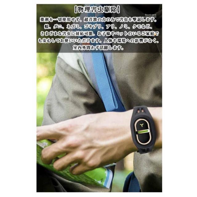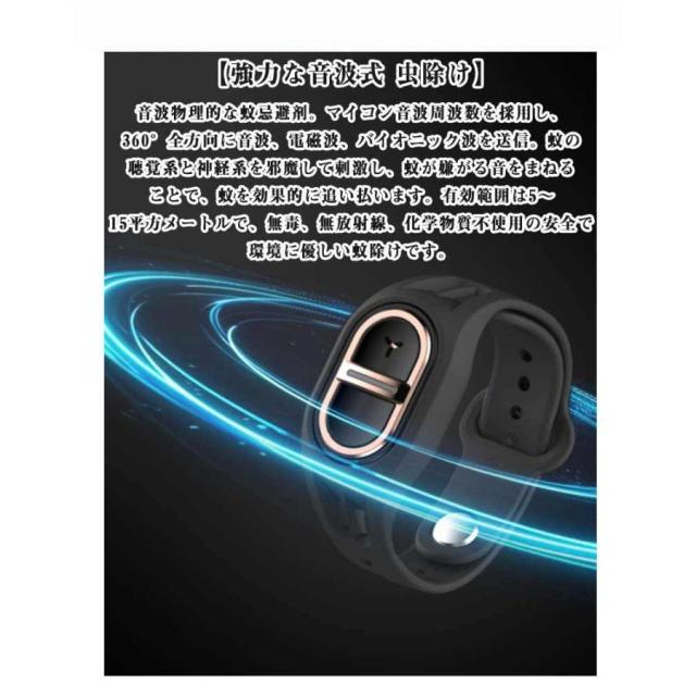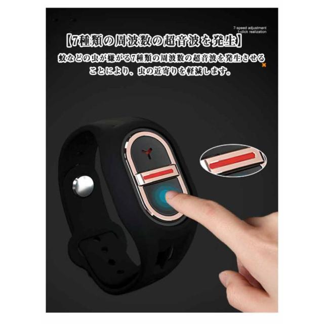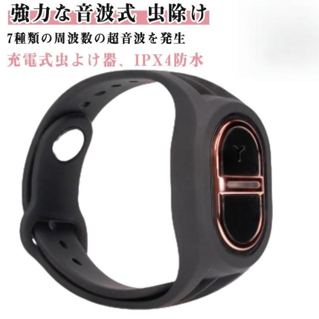 超音波蚊よけブレスレット 超音波 虫除け 小型 虫よけ 蚊よけブレスレット 360度シャット 充電式 7種類の周波数調整可 静音 IPX4防水 害虫対