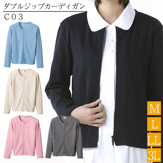 ダブルジップカーディガン C-03 M/L/LL/3L ディーフェイズ【オフィス カーディガン ナース カーディガン 看護 カーディガン 看護カーディガン 医療用カーディガン ジップ 事務 カーディガン 学生 制服 事務服 オールシーズン ファスナー カーディガン】