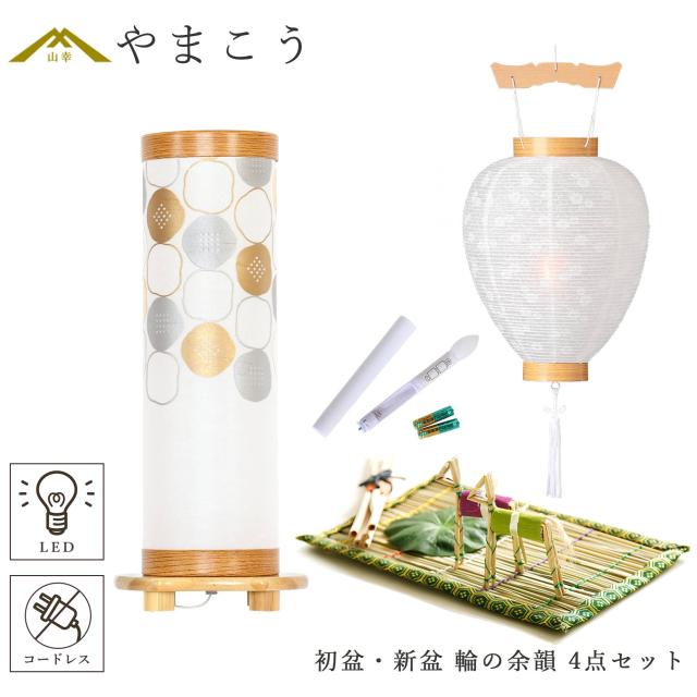 初盆セット 新盆セット 盆提灯 4点 セット モダン 仏具 八女・ととのえる燈 シリーズ 輪の余韻 白提灯 LEDろうそく 1本 真菰セット 小型 電池式 コードレス LED 和 行灯 提灯 仏壇 供養 仏花 贈り物 (代引き決済不可商品)
