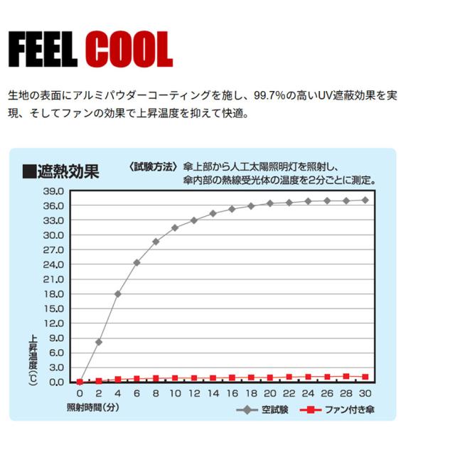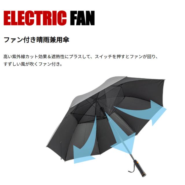 ■特長:ファン付き、晴雨兼用、遮熱、UVカット、傘袋付き