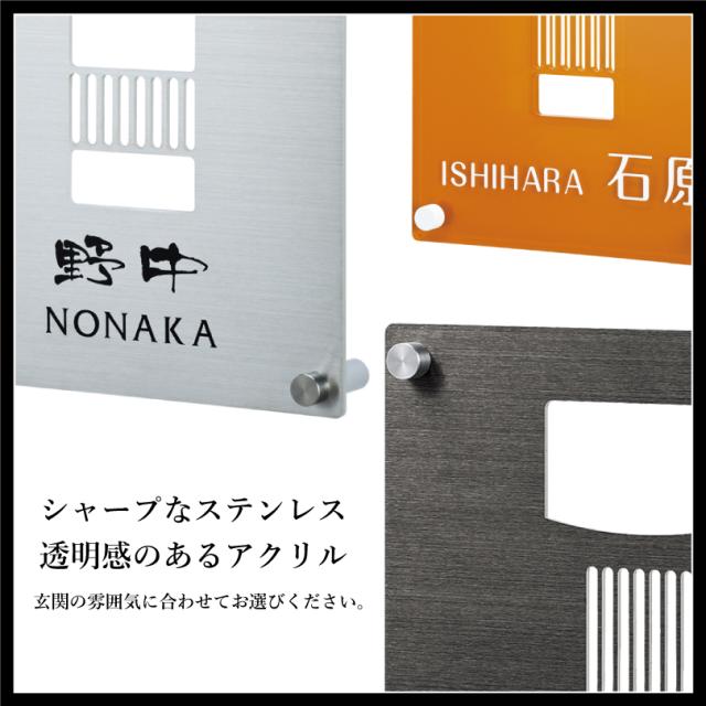 表札 ステンレス アクリル 名入れあり 名入れなし パターン8種対応 /ドライエッチング仕様 ドアホン 玄関子機 戸建て おしゃれ シンプル 高級感