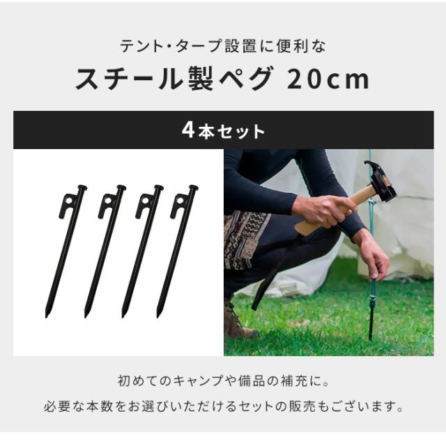キーワード: スチールペグ 20cm 強力 テントペグ ソリッドペグ 鉄製ペグ キャンプ ペグ タープ 固定用 アウトドア BBQ 焚き火 設営用 頑丈 曲がらない 打ち込みやすい 引き抜き簡単 4本 セット 黒 ブラック