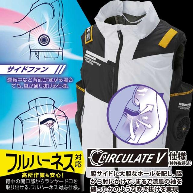 フルハーネス対応のベスト型空調風神ウェア