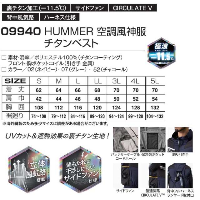 空調風神服 メンズ 服のみ 作業着 2026 半袖ブルゾン 熱中症対策 サンエス サイドファン 5l 大きいサイズ ハマー アタックベース 09940