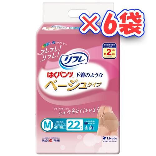 (リフレ)はくパンツ 下着のようなベージュタイプ Mサイズ 1袋22枚 ×6袋(1ケース)/介護オムツ /大人用紙オムツ /パンツ