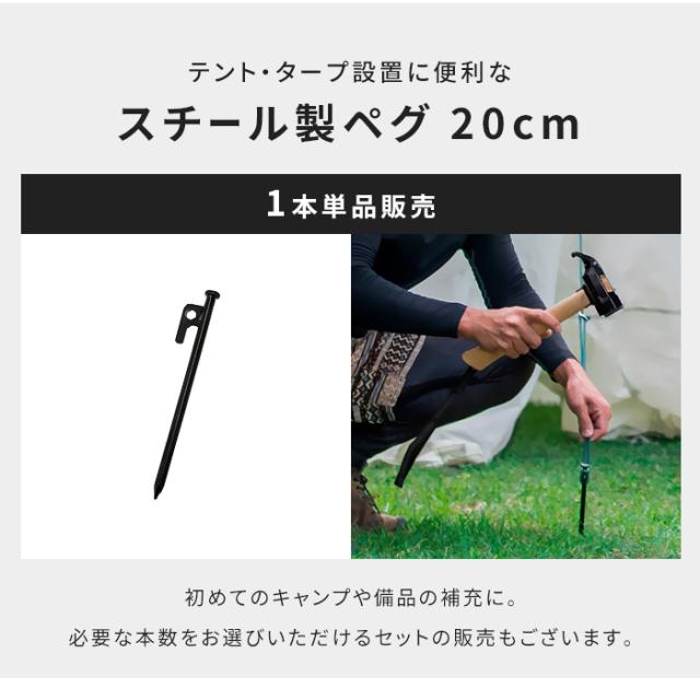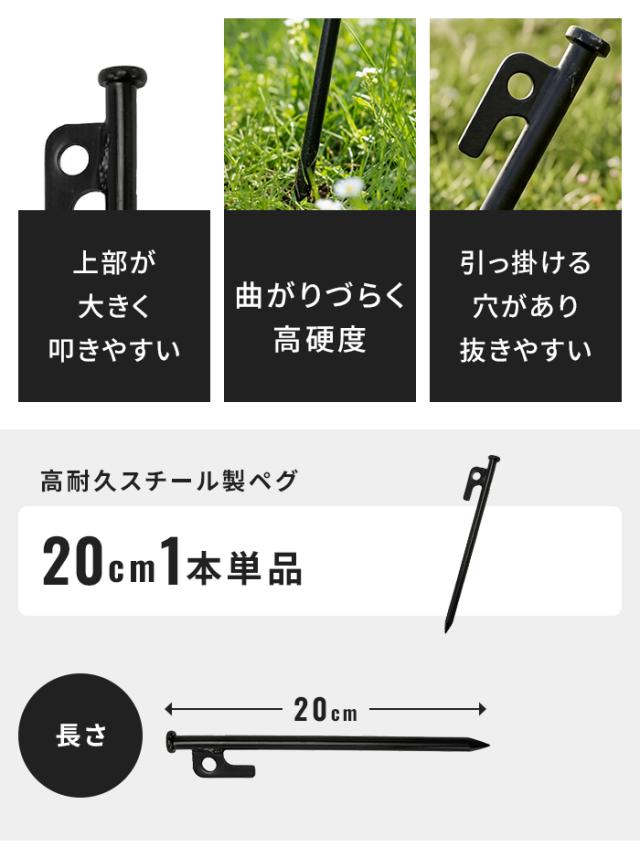 キーワード: スチールペグ 20cm 強力 テントペグ ソリッドペグ 鉄製ペグ キャンプ ペグ タープ 固定用 アウトドア BBQ 焚き火 設営用 頑丈 曲がらない 打ち込みやすい 引き抜き簡単 単品 1本 黒 ブラック