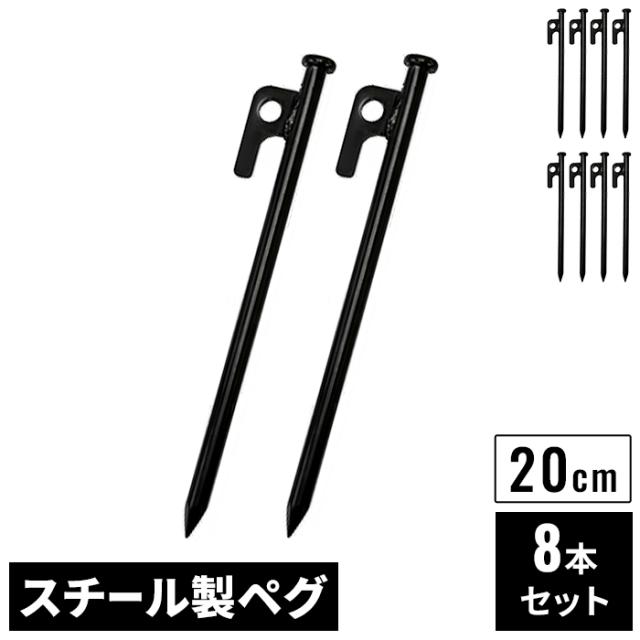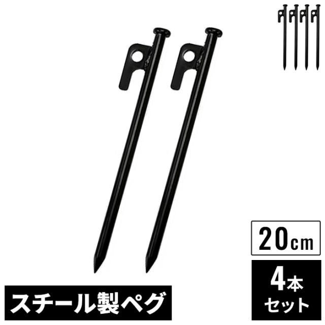 スチールペグ 20cm 4本 セット ブラック φ9mm スチール製 高強度 引き抜き穴付き ペグ テントペグ 鉄製 テント タープ 設営 固定用 頑丈 スチール 強力 固定用ペグ アウトドア キャンプ BBQ ペグセット 防災 黒