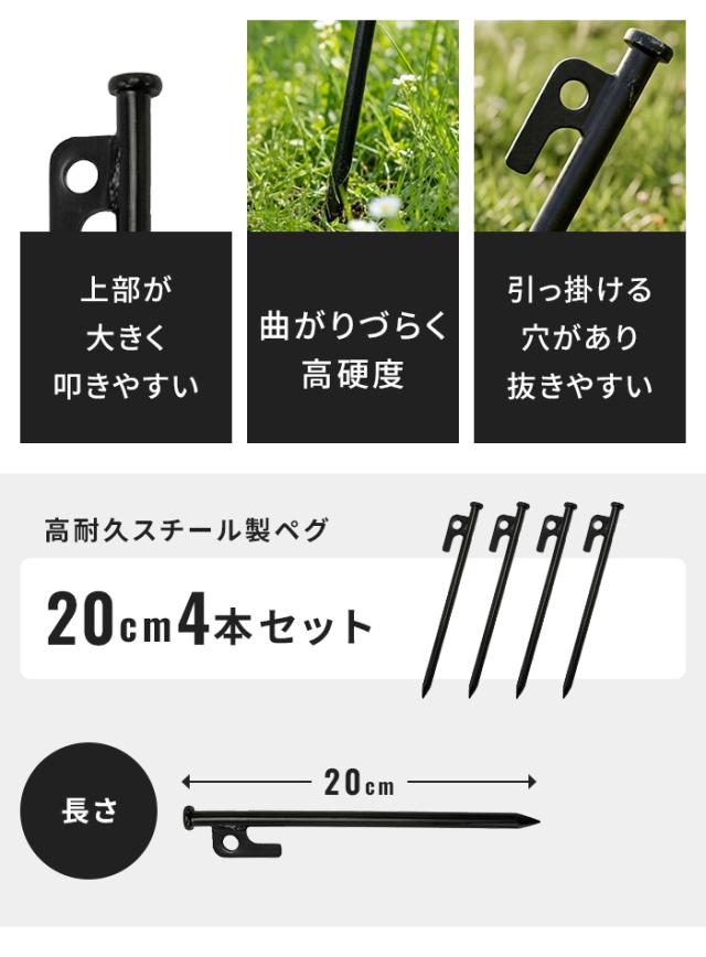 キーワード: スチールペグ 20cm 強力 テントペグ ソリッドペグ 鉄製ペグ キャンプ ペグ タープ 固定用 アウトドア BBQ 焚き火 設営用 頑丈 曲がらない 打ち込みやすい 引き抜き簡単 4本 セット 黒 ブラック