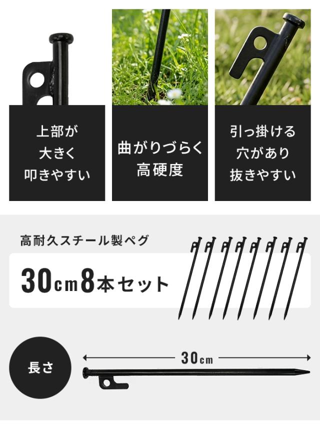 キーワード: スチールペグ 30cm 強力 テントペグ ソリッドペグ 鉄製ペグ キャンプ ペグ タープ 固定用 アウトドア BBQ 焚き火 設営用 頑丈 曲がらない 打ち込みやすい 引き抜き簡単 8本 セット 黒 ブラック