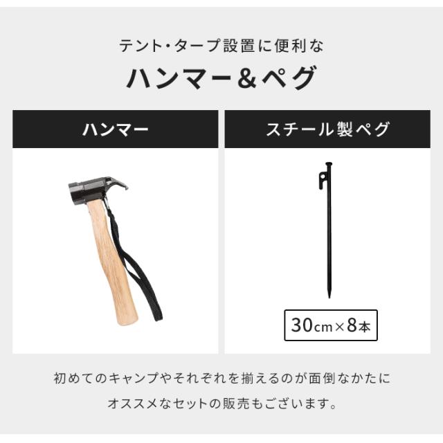 セットで揃えれば、初心者でもスムーズに設営が可能。ハンマー単体での購入にも対応しており、買い替えや追加用としてもご利用いただけます。