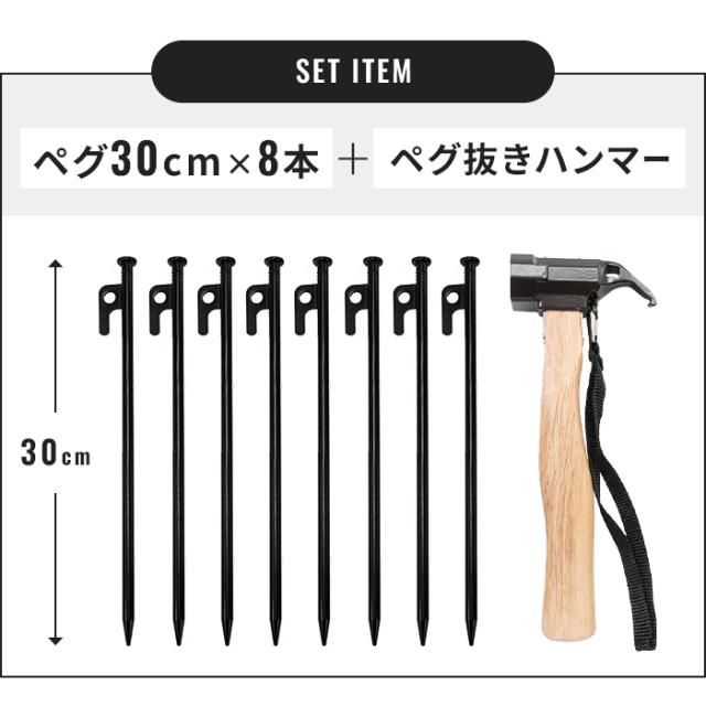 | ペグハンマー スチールペグ 30cm 8本 セット ペグ ハンマー 銅ヘッド ペグ抜きフック ストラップ付 ハンマー 銅 スチール 木製 ハンドル 強力 打撃 打ち込みやすい 握りやすい 鉄製ペグ 強力 テントペグ ソリッドペグ ペグ タープ 固定用 設営用 頑丈 曲がらない 打ち込みやすい 引き抜き簡単 黒 ブラック キャンプ アウトドア BBQ 焚き火 テント タープ スクリーン 設営グッズ テント設営 |