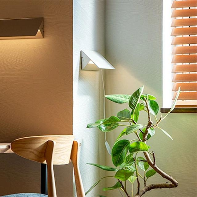 やさしく広がる「間接的な明るさ」を楽しめるウォールライトです。発光面を覆うように取り付けられたプレートシェードにより、光が周囲にやわらかく広がり、手元や壁面をほんのり照らします。目に刺さるような眩しさがなく、穏やかな灯りで落ち着いた雰囲気にしてくれます。