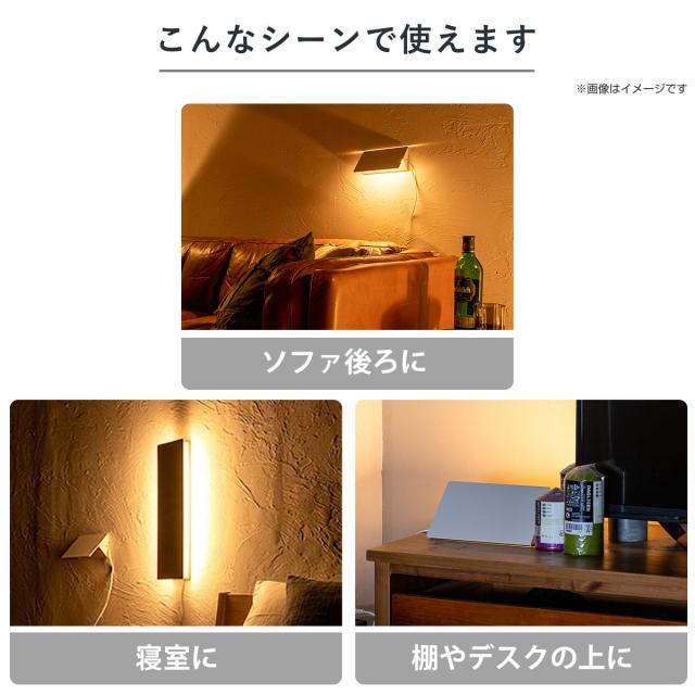 本体は縦向き、横向きどちらでも取り付けできます。床に置けば足元にぼんやりと灯りが広がり、雰囲気のあるフットライトとしても使えます。