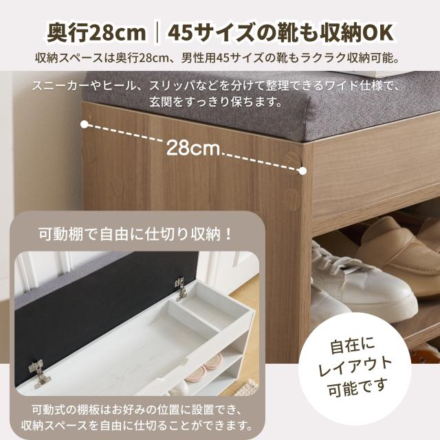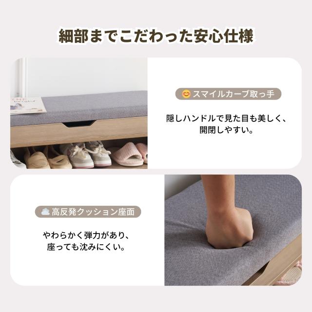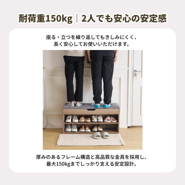 玄関ベンチ シューズラック 玄関椅子 玄関収納 収納ベンチ 下駄箱 靴箱 収納 小物収納 靴収納 省スペース 靴棚 靴入れ 収納ボックス付き 耐荷重150KG フットスツール 足置き ソファースツール コンパクト 玄関イス マルチに使える 高反発クッション座面 静音ヒンジ