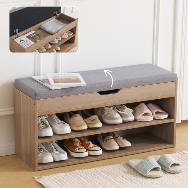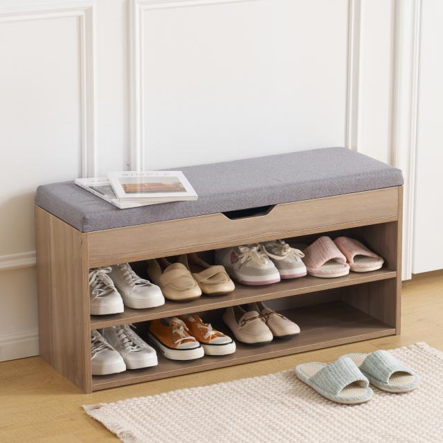 【美観と実用性の両立】シンプルなデザインで、ホワイト、ライトウッド、ブラウンなどいずれのカラーとグレーのクッションの組み合わせも、多様なインテリアスタイルに自然に溶け込み、玄関エリアの全体的な見栄えを向上させると同時に、日常の収納ニーズも満たします。