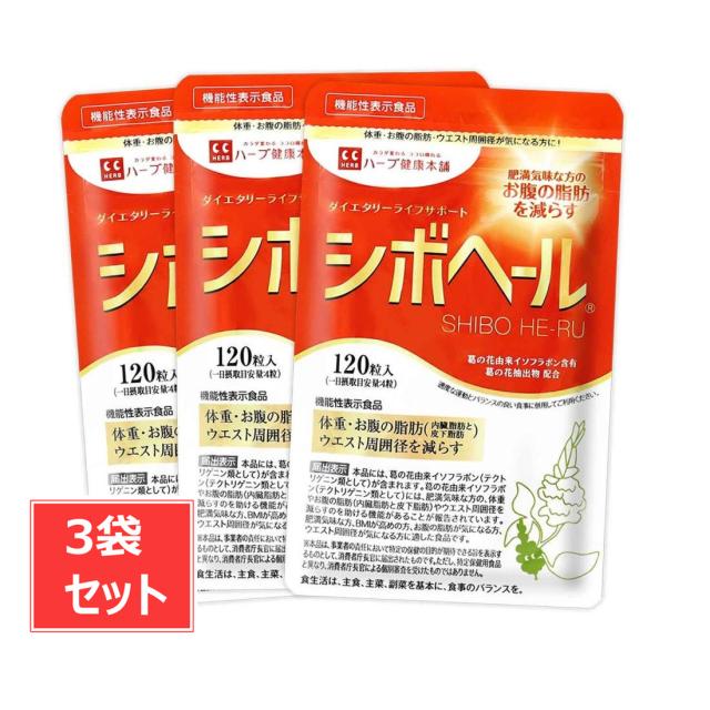 シボヘール ハーブ健康本舗 葛の花 イソフラボン 肥満 BMI 皮下脂肪 サポートシボヘール 120粒入り サプリメント 3袋 セット