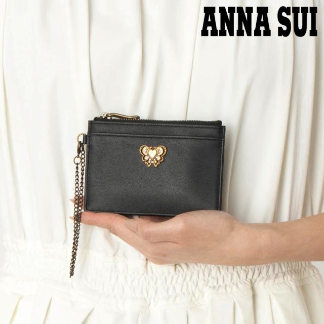 アナスイ パスケース 本革 ウィング レディース 318451 ANNA SUI カードケース 小銭入れ コインケース ミニ財布 コンパクト バタフライ ビジュー 本革 レザー
