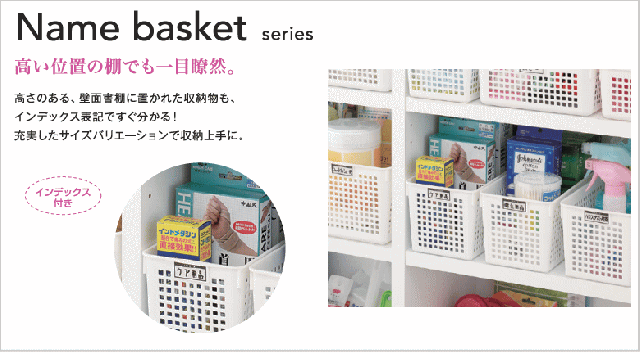 高い位置の棚でも一目瞭然 インデックス付き ネームバスケット