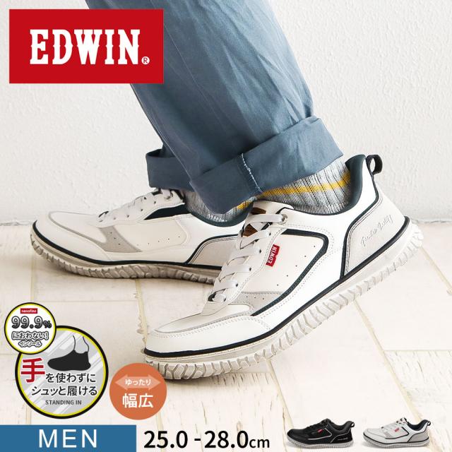エドウィン スタンディングイン スリッポン スニーカー メンズ 防臭 制菌 耐滑 幅広 ハンズフリー シューズ 男性 男性 メンズスニーカー 軽量 中学生 高校生 学生 通学 軽い 黒 ブラック 白 ホワイト EDWIN EDW-7284