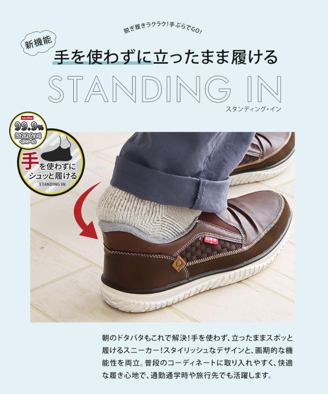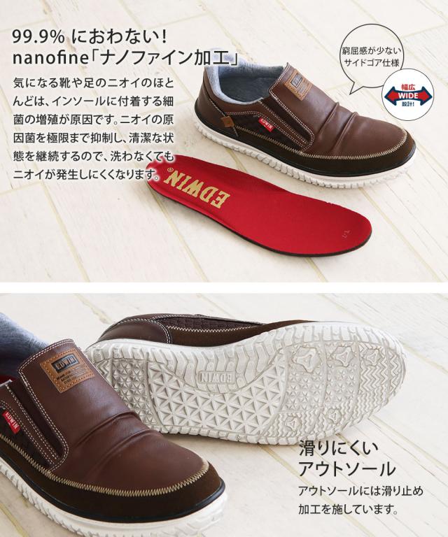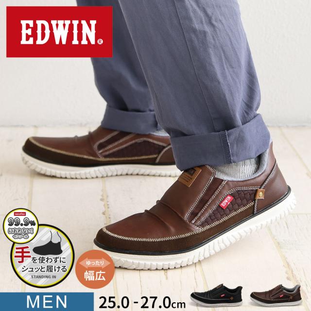 エドウィン スタンディングイン スリッポン スニーカー メンズ 防臭 制菌 耐滑 幅広 ハンズフリー シューズ 男性 メンズスニーカー 軽量 中学生 高校生 学生 通学 軽い 黒 ブラック ブラウン EDWIN EDW-7288