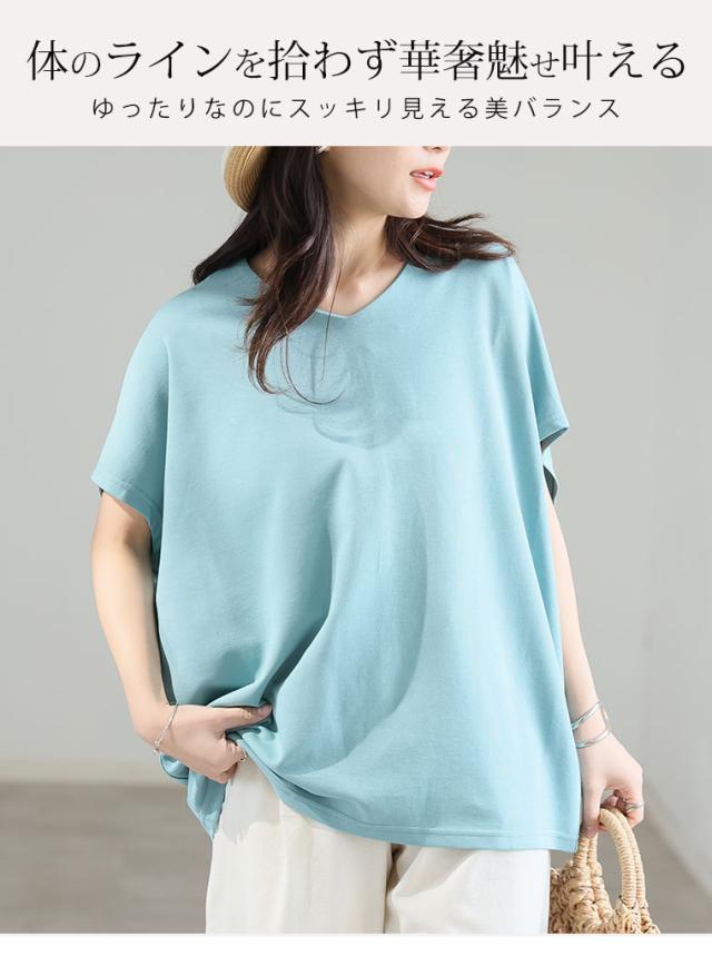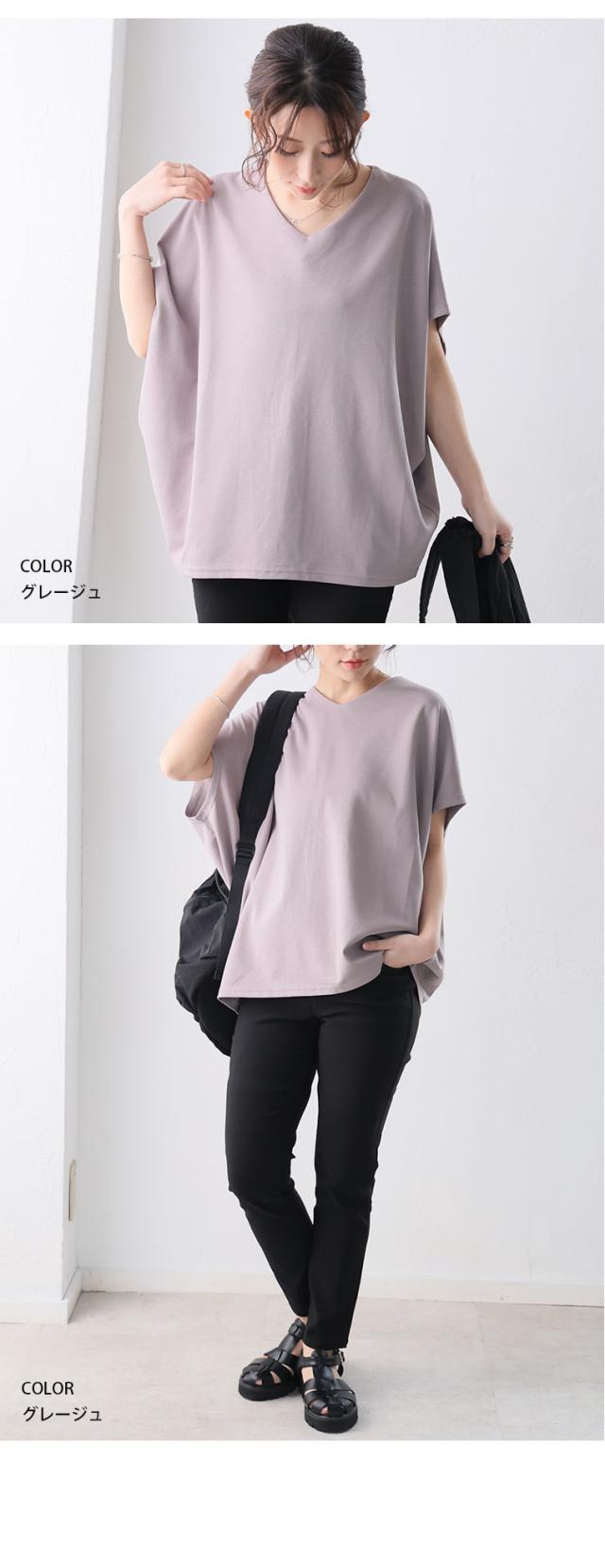 【ハッピーさらりんシリーズ】Vネック ドルマン プルオーバー カットソー