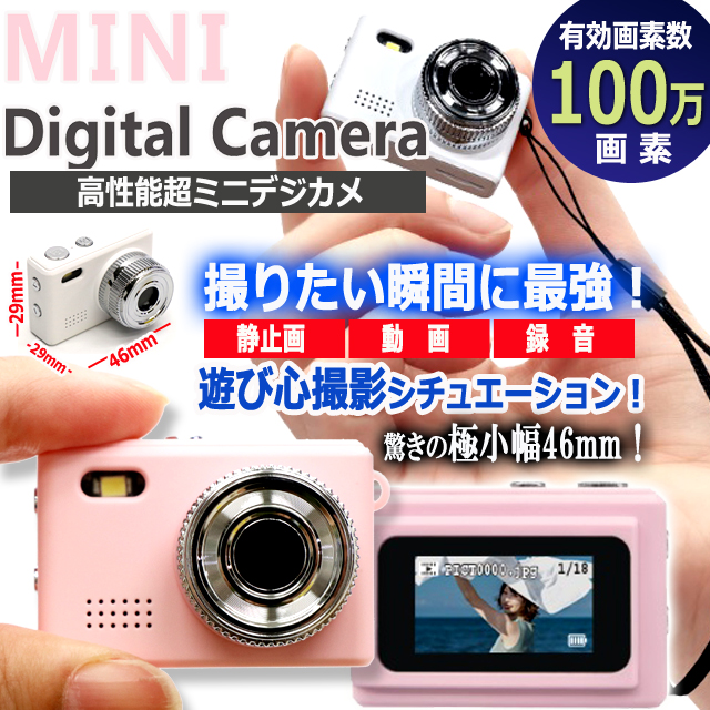 驚きの極小幅46mm!高性能100万画素超ミニデジカメ microSDカード 静止画 動画 録音 日付時刻設定 フラッシュ モニター SNS 超小型