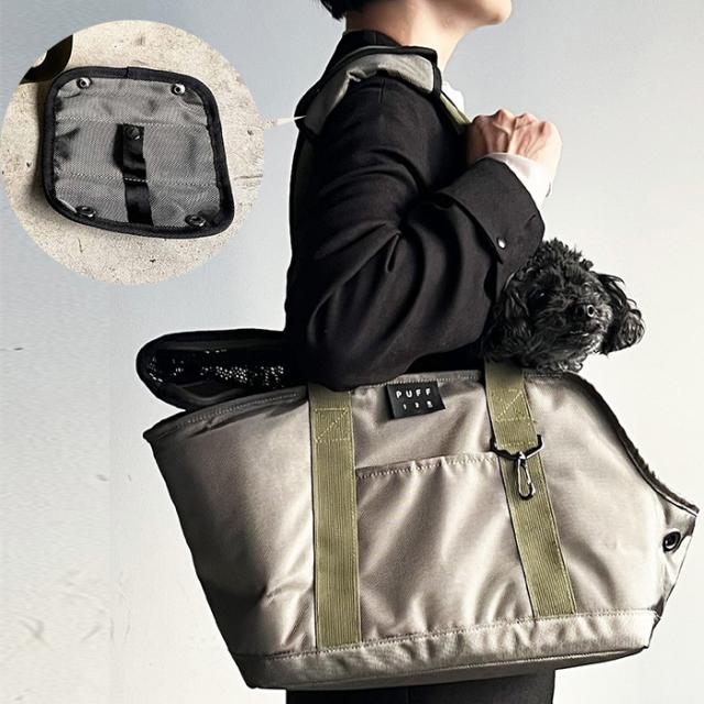 PUFF パフ ペットキャリートート M ペットキャリー ドッグキャリー 犬用 小型犬 超小型犬 トート型 おしゃれ かっこいい ユニセックス メンズライク 黒 ブラック カーキグリーン