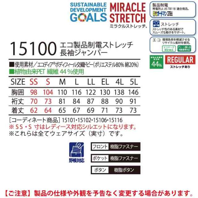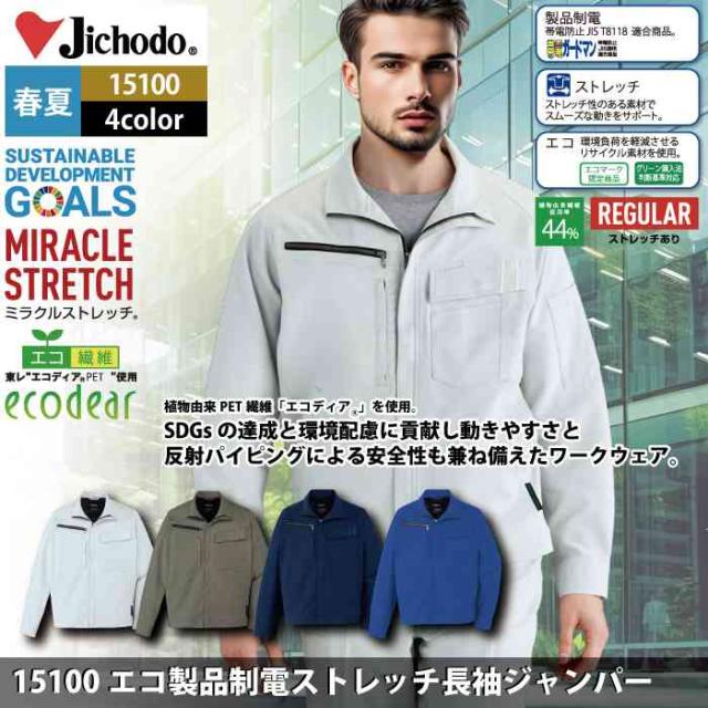 15100 エコ製品制電ストレッチ長袖ジャンパー