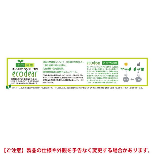 ◇植物由来繊維(バイオベース原料)を使用した 二酸化炭素の排出を減らし 化石燃料の使用量削減 環境負荷低減に貢献するユニフォーム。