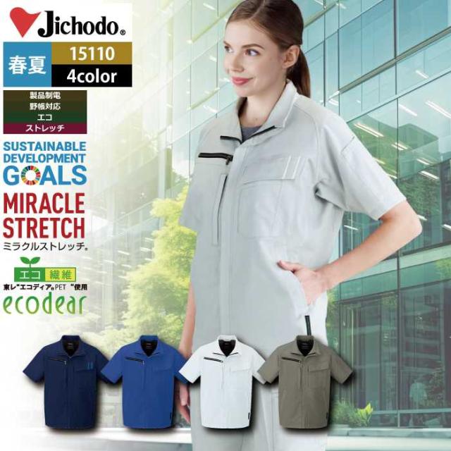 自重堂 作業服 15110 エコ製品制電ストレッチ半袖ジャンパー 4L-5L 春夏用 作業着