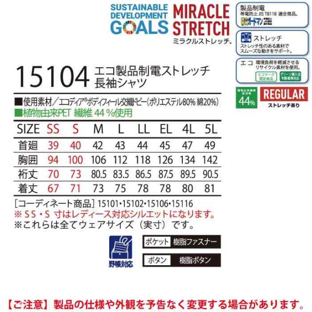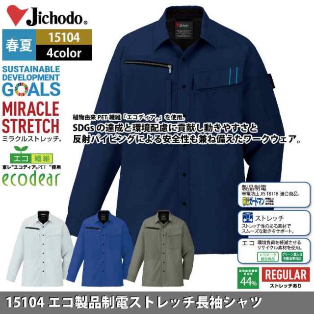 15104 エコ製品制電ストレッチ長袖シャツ