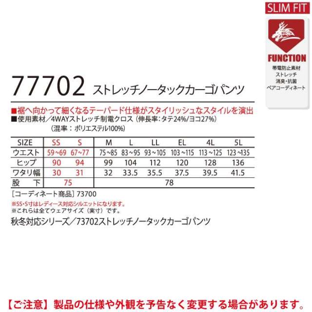 自重堂 Z-DRAGON 作業服 77702 ストレッチノータックカーゴパンツ EL 春夏用 作業着
