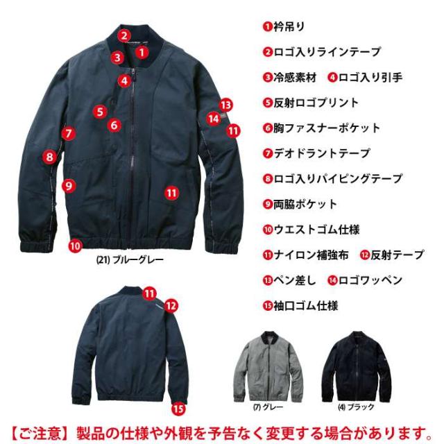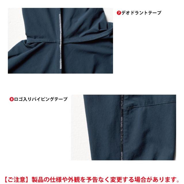 ◇機能:衿吊り・ロゴ入りラインテープ・冷感素材・ロゴ入り引手・反射ロゴプリント・胸ファスナーポケット・デオドラントテープ・ロゴ入りパイピングテープ・両脇ポケット・ウエストゴム仕様・ナイロン補強布・反射テープ・ペン差し・ロゴワッペン・袖口ゴム仕様