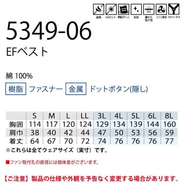 ファン付きウェア(服のみ) 桑和 SOWA 作業服 5349-06 EFベスト 6L 春夏用 作業着 ソーワ ワークウェア
