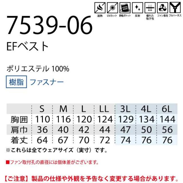 ファン付きウェア(服のみ) 桑和 SOWA 作業服 7539-06 EFベスト 4L 春夏用 作業着 ソーワ ワークウェア