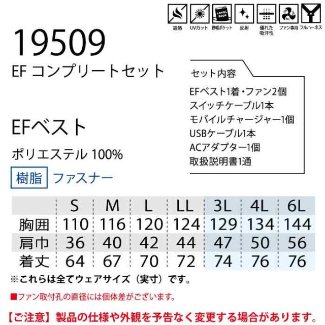 ◇セット内容:EFベスト1着・ファン2個・スイッチケーブル1本・モバイルチャージャー1個・USBケーブル1本・ACアダプター1個・取扱説明書1通