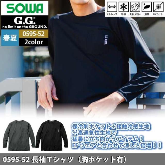 桑和 SOWA 作業服 0595-52 長袖Tシャツ(胸ポケット有) 4L 春夏用 作業着 ソーワ ワークウェア