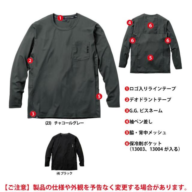 ◇機能:ロゴ入りラインテープ・デオドラントテープ・G.G.ピスネーム・袖ペン差し・脇/背中メッシュ・保冷剤ポケット(13003/13004が入る)