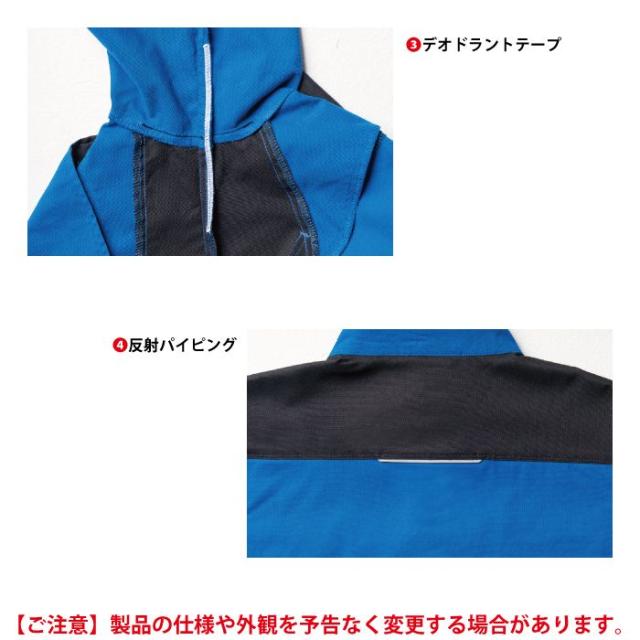 ◇機能:胸二重ポケット・胸ファスナーポケット・デオドラントテープ・反射バイピング・ノーフォークメッシュ・両側胸ペン差し・袖ペン差し・ネームループ・アジャスト面ファスナー・ドットボタン(隠し)・脇ポケット・JIS静電ネーム(隠し)・内ポケット・ユニセックス対応