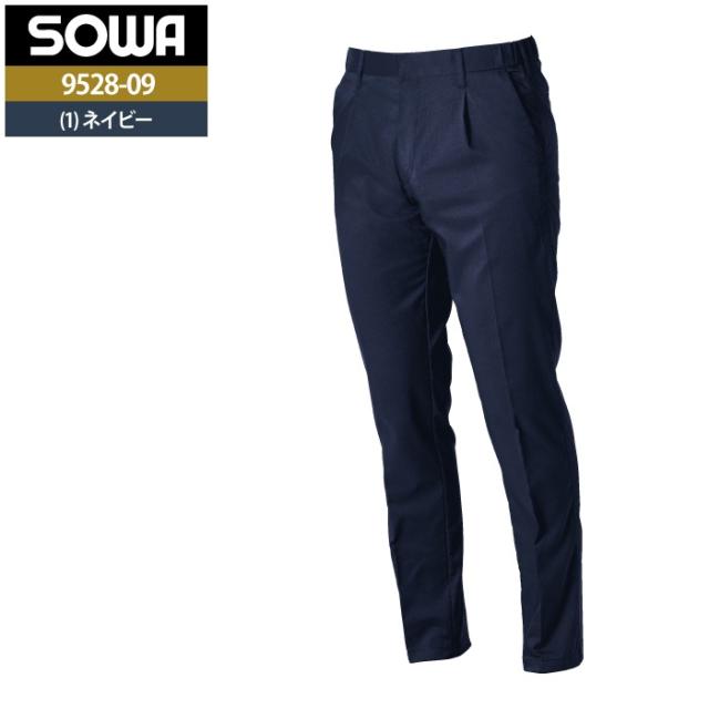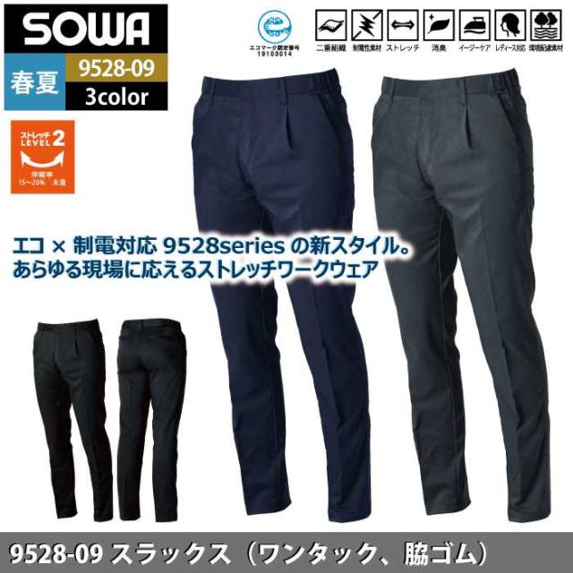 桑和 SOWA 作業服 9528-09 スラックス(ワンタック脇ゴム) GS-LL 春夏用 作業着 ソーワ ワークウェア