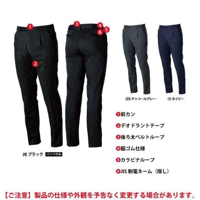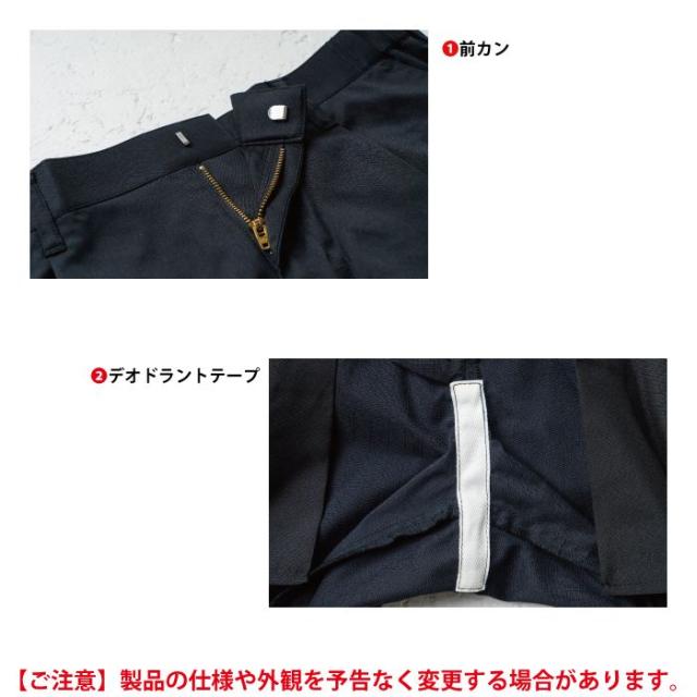 ◇機能:前カン・デオドラントテープ・後ろ太ベルトループ・脇ゴム仕様・カラビナループ・JIS制電ネーム(隠し)・ユニセックス対応