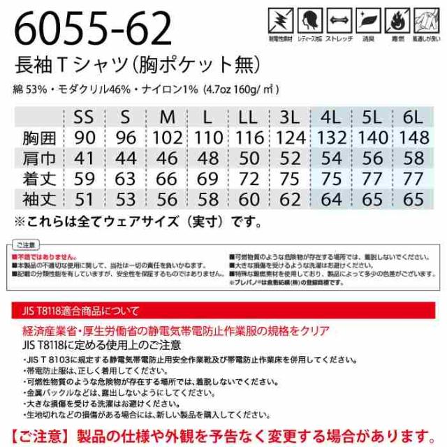 桑和 SOWA 作業服 6055-62 長袖Tシャツ胸ポケ無難燃 SS-3L 春夏用 作業着 ソーワ ワークウェア